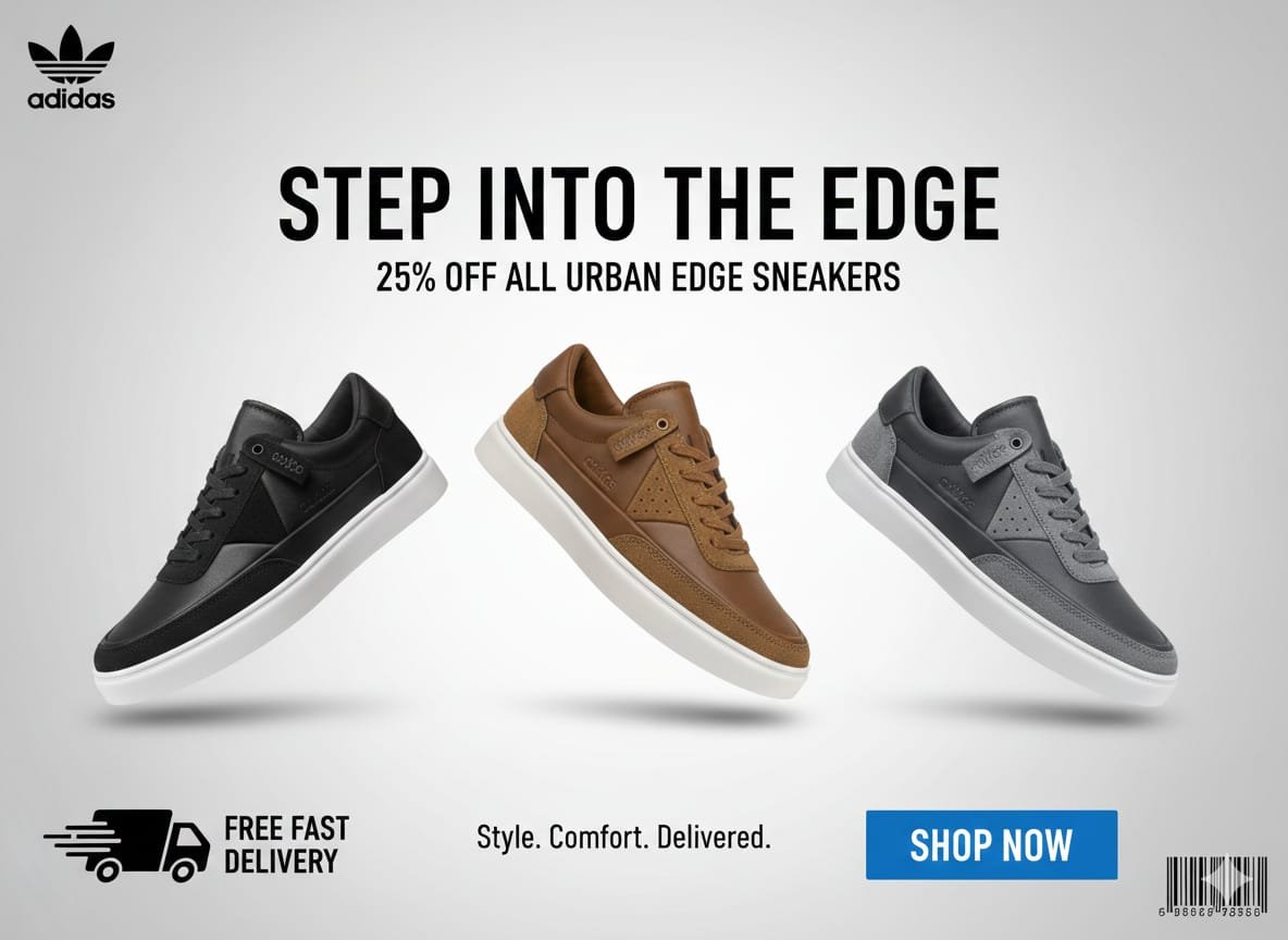 Step into the future of casual style with the Adidas Urban Edge—a sleek blend of modern design, premium materials, and unbeatable comfort. Built for everyday movement, these sneakers feature soft cushioning, a lightweight sole, and a clean silhouette that fits any outfit.