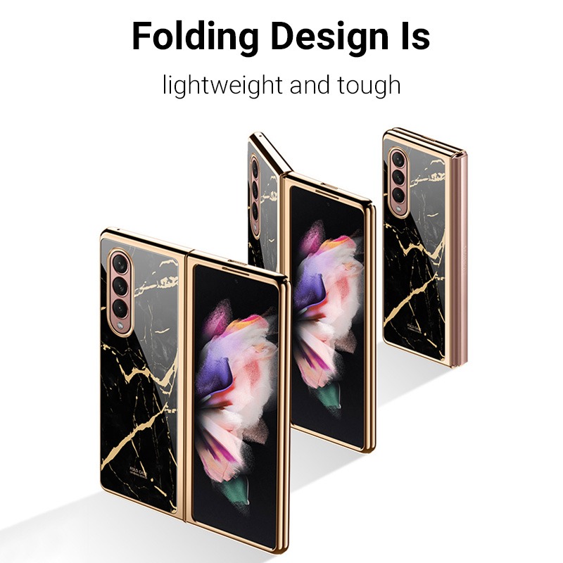 Luxury Premium Marble Patterned Shockproof Armor Case For Samsung Galaxy Z Fold 3&4 With Hinge Protection 360 Degree Case with Built-in Screen Protector