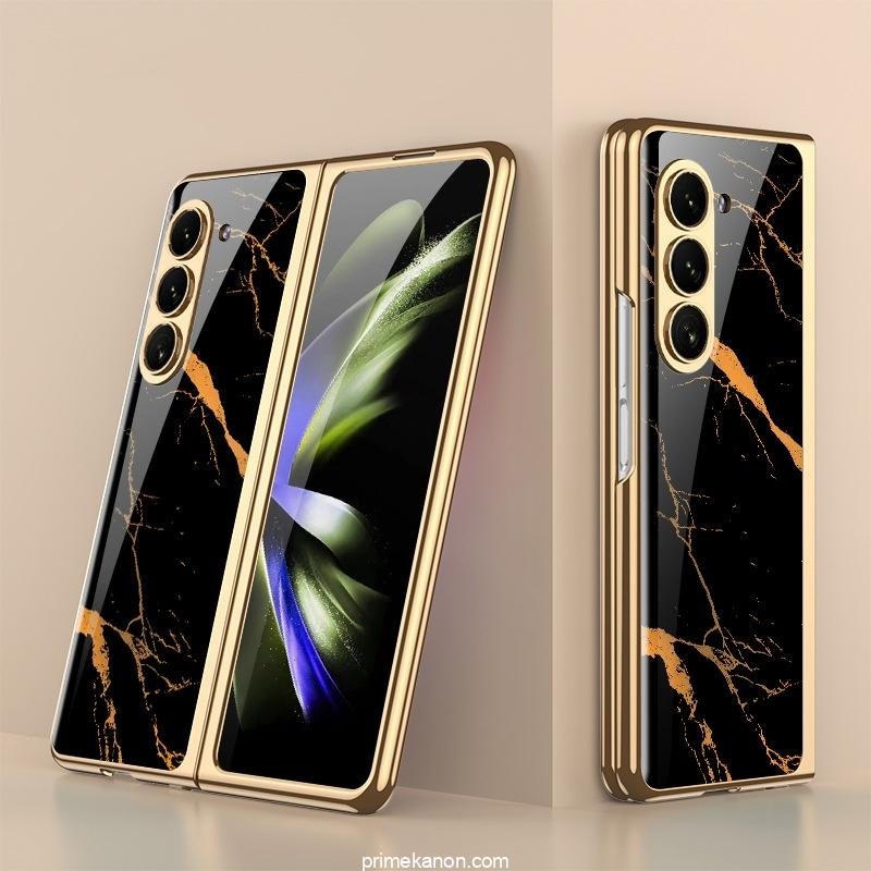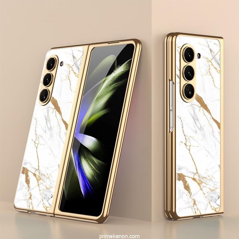 Luxury Premium Marble Patterned Shockproof Armor Case For Samsung Galaxy Z Fold 5 With Hinge Protection 360 Degree Case with Built-in Screen Protector